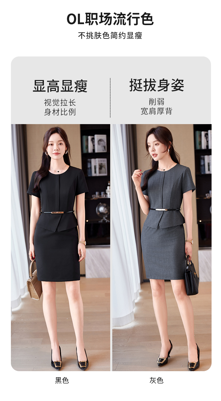夏季新款職業連衣裙女時尚珠寶店短袖裙子美容院前臺接待OL工作服-職業裙訂製 夏季新款職業連衣裙女時尚珠寶店短袖裙子美容院前臺接待OL工作服-職業裙訂製